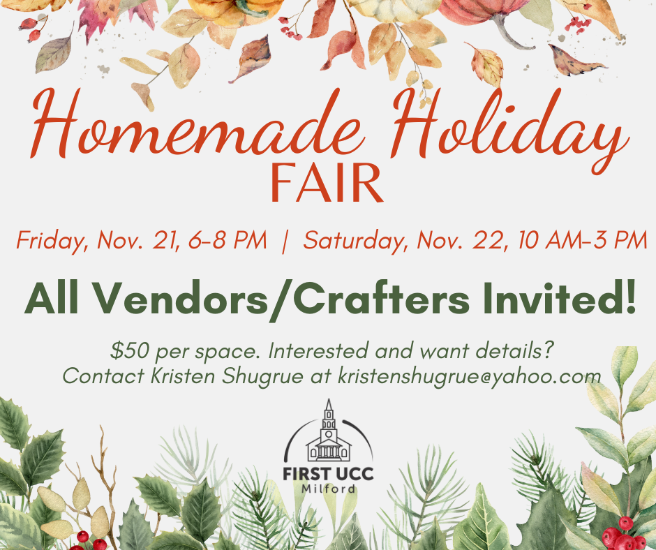 Details coming!! Save the date for our holiday Fair Nov. 21 & 22.